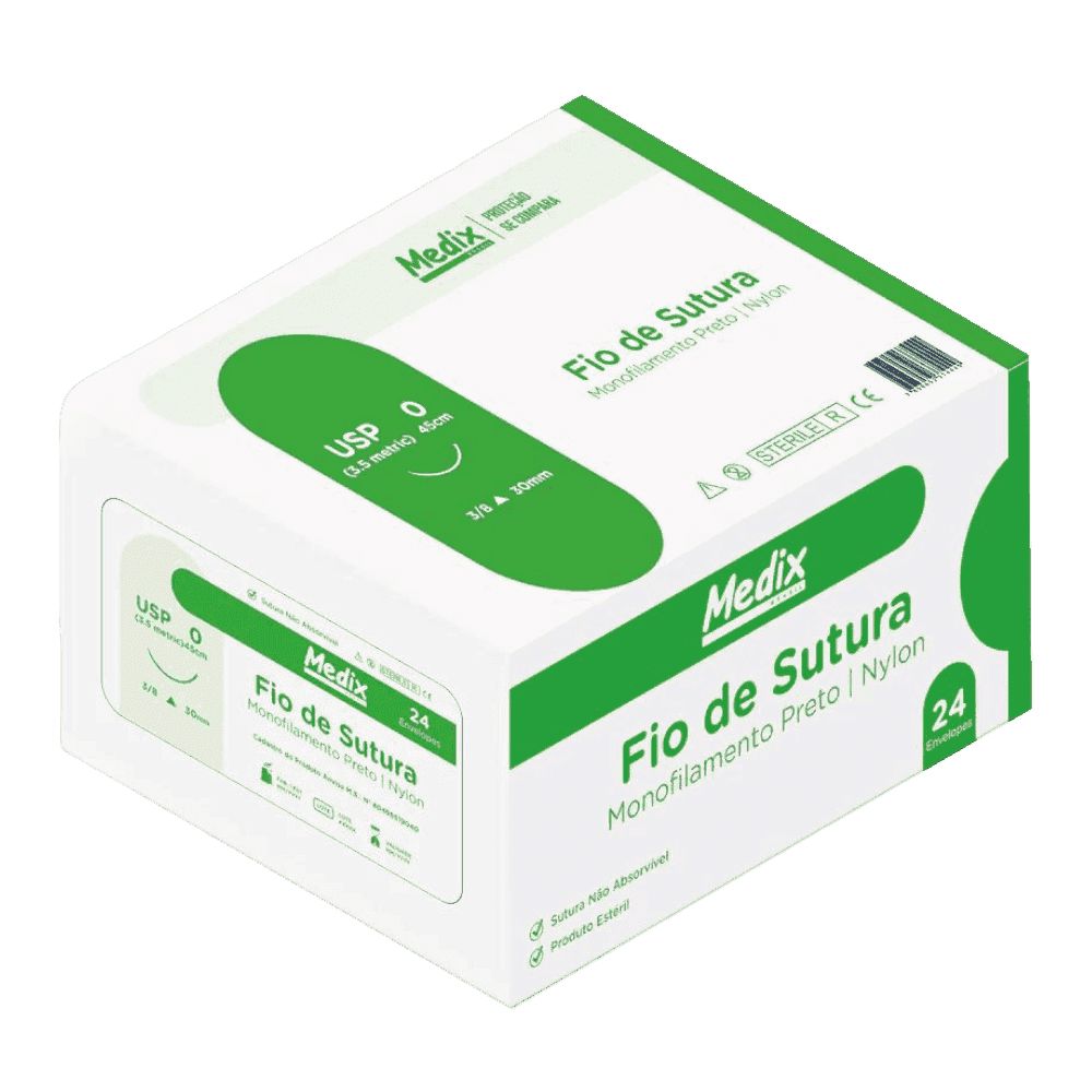 Fio de Sutura Nylon 3-0 c/Ag. 20mm 3/8 Triangular c/ 24 un. - Medix