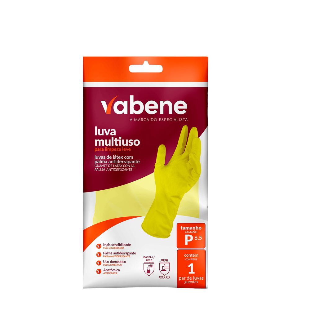 Par de Luva Proteção Multiuso em Látex Amarela G - Vabene