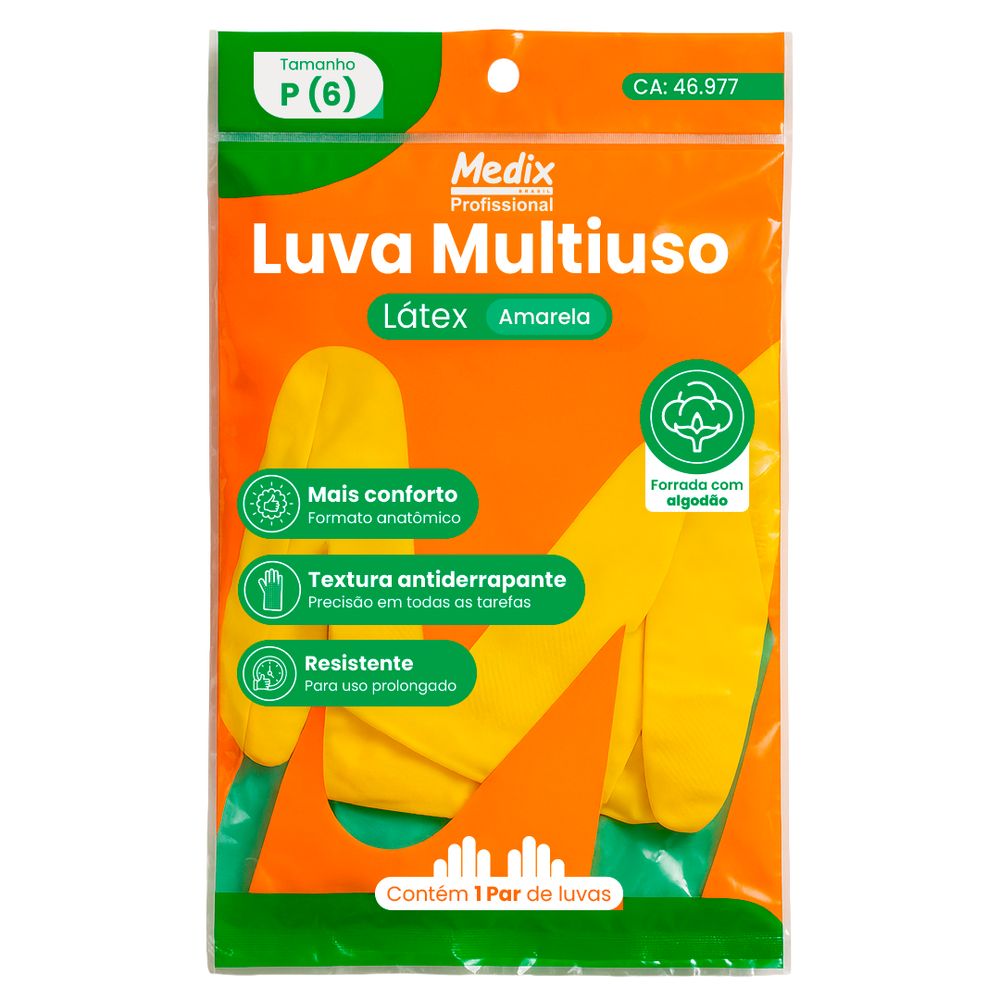 Par de Luva Proteção Multiuso em Látex Amarela P - Medix