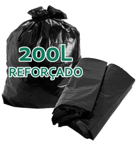Saco p/ Lixo Preto Reforçado 6 Micras 200L c/ 100Un.