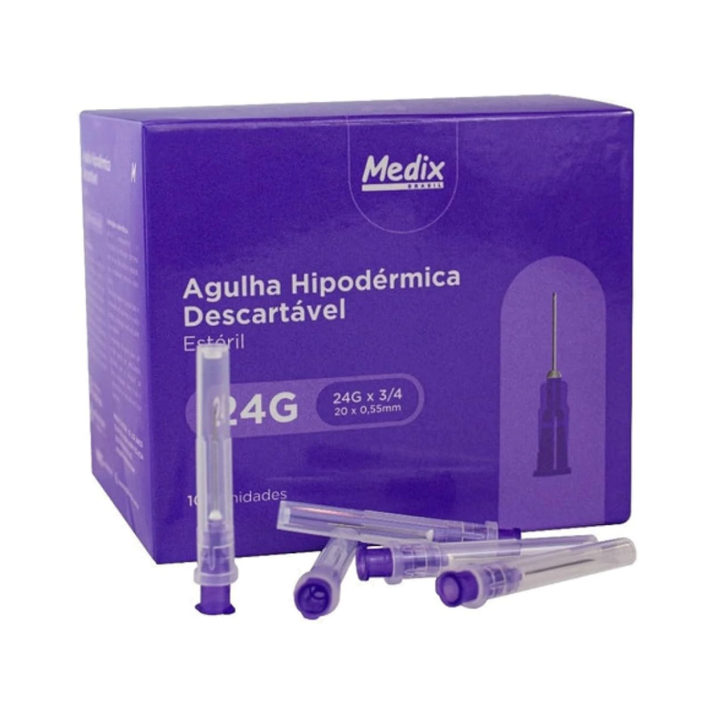 Agulha Hipodérmica 20mm x 0,55mm (24g Roxa) 100Un - Medix