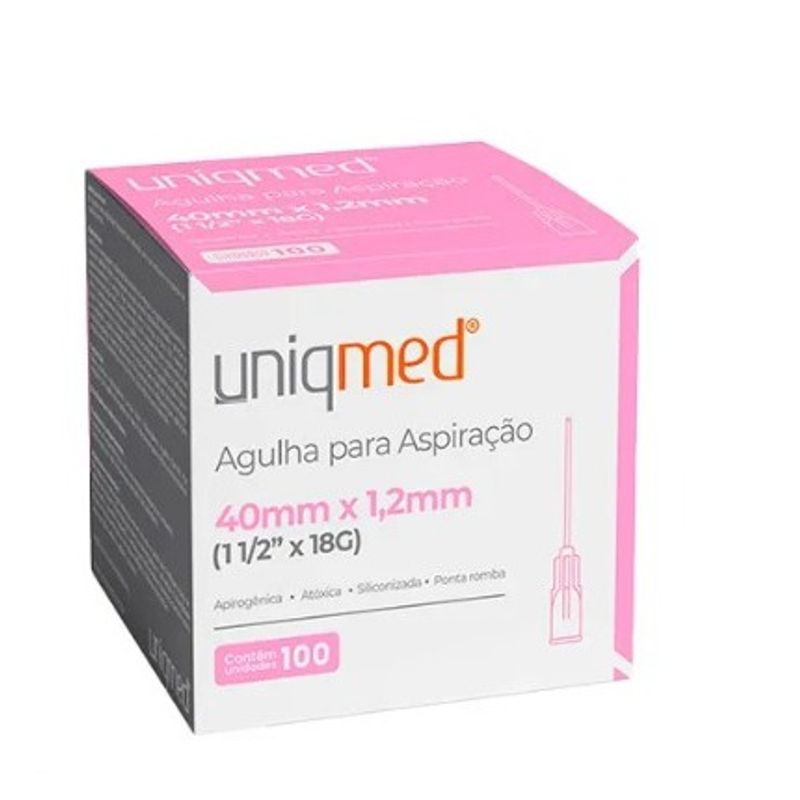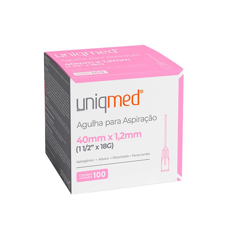 Agulha P/ Aspiração 40mmX1,2mm Ponta Romba 100 Un. - Uniqmed