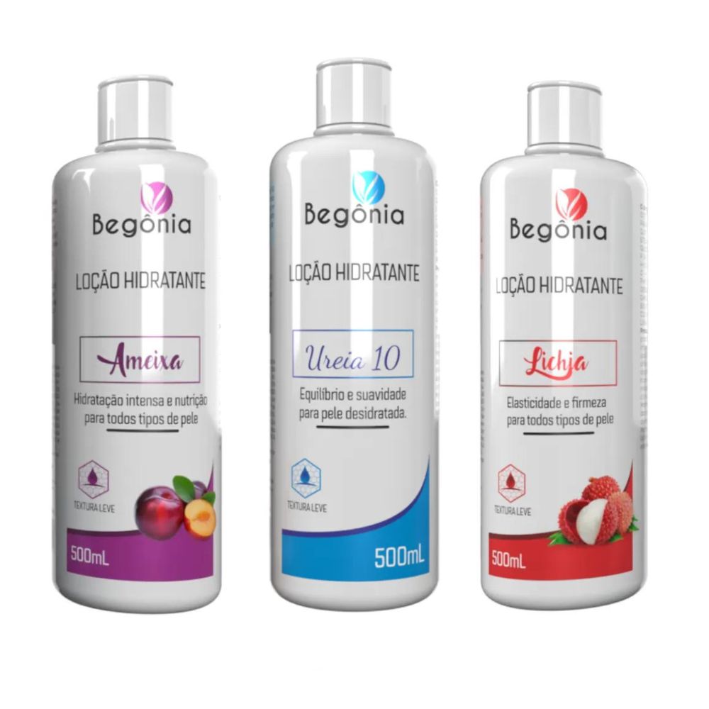 Kit 3 Hidratantes Begônia (Ureia, Lichia, Ameixa) 500ml/cada